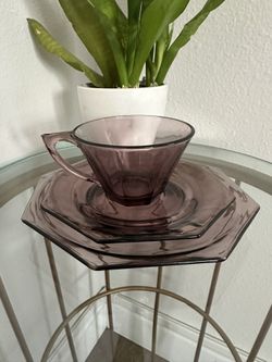 MCM Hazel Atlas Amethyst Moroccan Octagon Purple Glass 3Pc Place Setting 1950's.$45Zephyrhills, FL