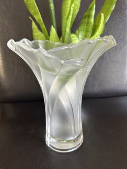 Mikasa Crystal Clear Frosted Fluted Fan 7 1/2" Art Glass Vase 1980's $38Zephyrhills, FL