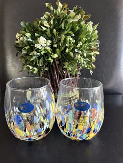 Murano-Style White Cristal Brand Muliti Colorful Stemless 16oz Wine Glass Set Made in Italy NWT$75Zephyrhills, FL
