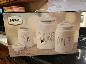 Parini 3 pc Ceramic Kitchen Canister Set Sugar Coffee Tea White$35Gastonia, NC