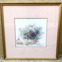 Pink, Yellow, Blue & Peach Floral Flower Pot Picture In Gold Frame Shabby Chic Home Room Bedroom Wall Art$48Torrance, CA