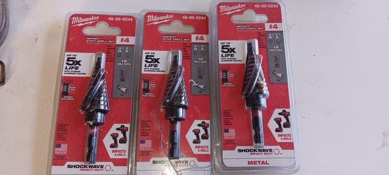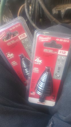 TWO NEW MILWAUKEE #12 JAM FREE STEP DRILL BITS And 2 #4 Impact STEP DRILL Bits$60Saginaw, TX