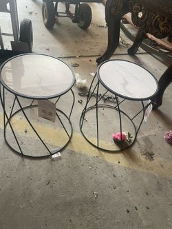 Brand New, Beautiful pair of black metal and faux marble-top side tables or accent tables. $30Modesto, CA