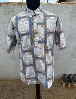 PreOwned Reyn Spooner Hawaiian Print 3/4 Button Men's Medium Blue$55Waipahu, HI