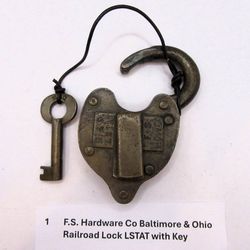 Vintage Lock F.S. Hardware B&O RR Switch Lock LSTAT with Key$175Huntington Beach, CA