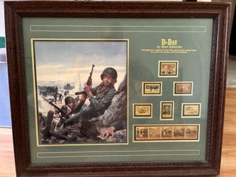 D-Day Art Print by Mort Kunstler w/50th Anniversary Stamp Issues US, France. UK$180Miami, FL