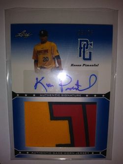 Kevin Pimentel 2013 Leaf blue auto #'d 05/25 Colorado Rockies draft autograph and jersey card# JA-KP1. Authentic Autograph and game worn jersey. Raw, $50St. Charles, IL