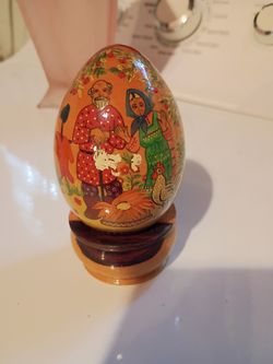 Vintage Hand-Painted Russian Wooden Egg – Folk Art "Chicken Ryaba" Story$20Philadelphia, PA