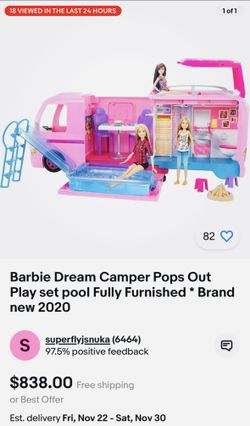 Barbie Dream Camper Pops Out Play set pool Fully Furnished like new 2020$49Mckinney, TX