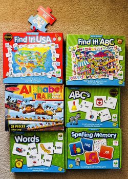 Floor puzzles memory match it spelling words ABC USA map train the learning journey EUC $9Mckinney, TX