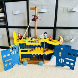 Jake Neverland pirates ship Captain Hook Izzy Cubby Smee crocodile, parrot w/ treasure 2 extra pirates $35Mckinney, TX
