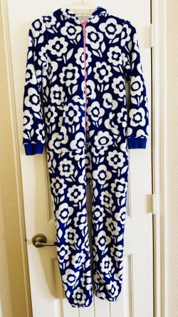 Mini Boden Floral Fleece Onesie youth girl womens 10-12 yr blue white flowers warm bodysuit pajamas $25Fairview, TX