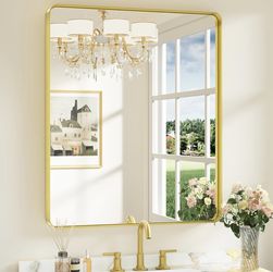 Keonjinn Gold Mirrors for Bathroom Sink 30 x 36 Inch Rounded Rectangle Brushed Brass Mirror$90North Las Vegas, NV