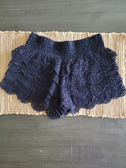 Rewind Navy Crochet Layered Elastic Waist Lined Women's Shorts Sz S$14Pflugerville, TX