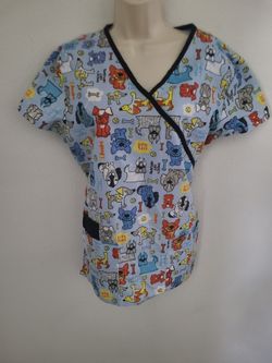 Scrubs Dog Print Top Medical Or Veterinary Pockets Tie Back Sz M$20Pflugerville, TX