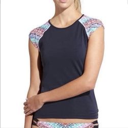 Athleta Womens M Short Cap Sleeve Swim/athletic shirt, quick dry Shirt Navy Blue$18Artesia, CA