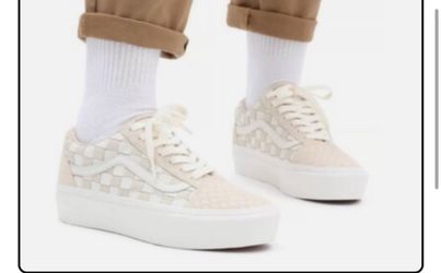 Vans Old Skool Platform Women Size 8 Beige Woven Leather Shoes Sneaker$45Artesia, CA