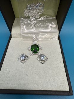 Silver Necklace Round Green Zircon & Earrings Crystal Clear.$30Miami, FL