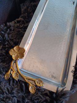 $18 Vintage Serving Tray With Brass Floral Handles. Rectangular Hammered Silver Plate 17"x 6"$18Gilbert, AZ