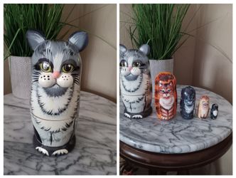 $25 Grey Tabby Cat Russian Nesting Dolls. 5 piece Each Has a Unique Personality, Handpainted $25Gilbert, AZ