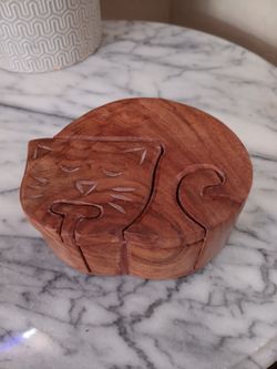 $15 Handcrafted Wooden Puzzle Trinket Box Handmade Sleeping Cat Hidden Storage.$15Gilbert, AZ