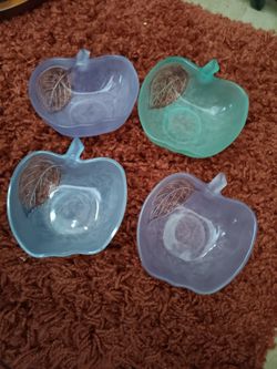 4 Vintage Frosted Glass Dessert Bowls, With Leaf, 2 Purple 1 Green 1 Blue $15Gilbert, AZ
