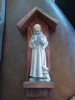 $15 Saint Francis Of Assisi Wall Hanging Statue Wood Ceramic Bunny Birds 9" Tall $15Gilbert, AZ