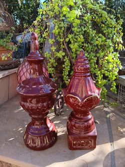 $25 Pair of Fantastic Deep Red Garden/Home Ceramic Finials, nice weight $25Gilbert, AZ