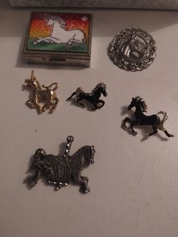 Horse Unicorn Brooch And Rusty Trinket Box Lot $15Pinellas Park, FL