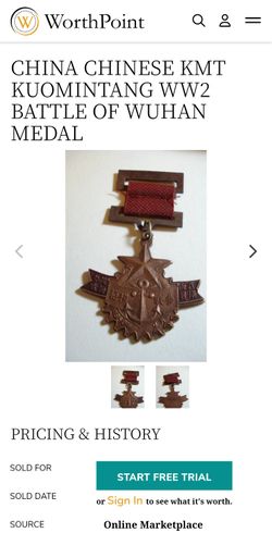 WWII Battle Of Wuhan Chinese KMT Medal 🏅 $40Rancho Cucamonga, CA