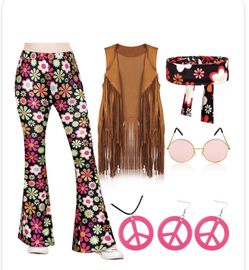 7 Pcs Kids 60s 70s Hippie Outfits for Girls Costume Set Boho Flared Pants Hippie Outfits Accessories Set Large ( Rodeo )$20Houston, TX