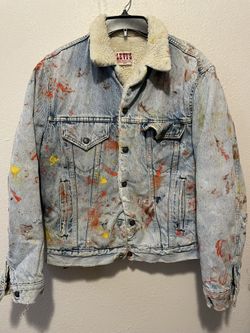 VTG 80s LEVIS Made in USA Sherpa Lined Denim Trucker Jacket Custom Paint$35Long Beach, CA