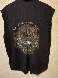 Vintage Y2K Laughlin Biker Run Motorcycle Denim Cutoff Vest Button Up Medium$25Long Beach, CA