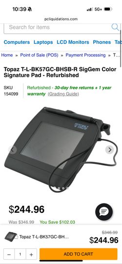 Topaz T-L-BK57GC-BHSB-R SigGem Color Signature Pad - $75Gardena, CA