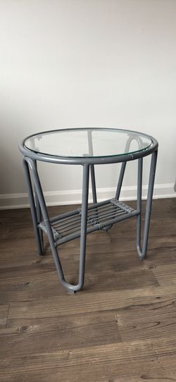 Round End Table With Glass Top And Rattan Shelf$30Stamford, CT