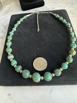 925 Sterling Silver, Designer Carolyn Pollack Genuine Turquoise Necklace, Total 20.5 In With Extender, Hallmarked W/ Her Logo, 925, 40 Grams $78Victorville, CA