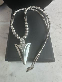Vintage 925 Sterling Silver, 17.5 In. Native Am. Beaded Necklace W/ Arrowhead Black Onyx Inlay, Marked Sterling , Barrel Closure, Very Nice Looking $48Victorville, CA