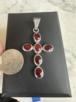 Beautiful 925 Sterling Silver Red Carnelian Cross Pendant, Marked 925 Mexico , Large Bale , Over 2 In. $42Victorville, CA