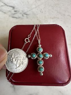Vintage 925 Sterling silver Native Am. Navajo double sided turquoise and coral cross necklace , 18 in 925 chain , this is tested and guaranteed Sterli$42Victorville, CA