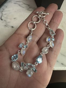 925 Sterling Silver Genuine Moonstone And Blue Topaz Bracelet, Size 6.75-8 Adjustable, Toggle Closure , Marked 925 , Gorgeous!$45Victorville, CA