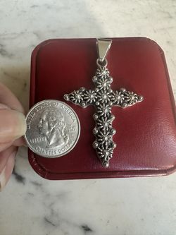 Vintage 925 Sterling Silver Cross Pendant , Marked 925 Mexico 🇲🇽, 2.25in. X 1.5 In. , Large Bale ! Beautiful Cross $43Victorville, CA
