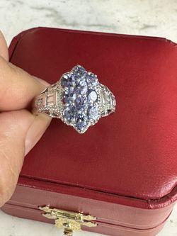 925 Sterling Silver , Genuine Oval Tanzanites W/ Genuine Topaz On Sides Ring , Size 10 , Hallmarked And Tested Gemstones In Photos, Gorgeous Ring !!$38Victorville, CA