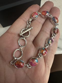 925 Sterling Silver Spiny Oyster Turquoise Bracelet, Adjustable 6.5-8 In . Toggle Closure , Marked 925 Gorgeous Rainbow Of Colors $40Victorville, CA
