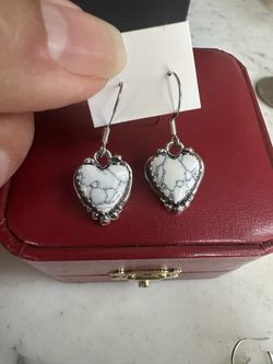 925 Sterling Silver White Buffalo heart Earrings, Marked 5 Star ⭐️ Sterling , Also Marked 925 On Hooks$22Victorville, CA