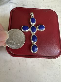 925 Sterling Silver W/ Blue Lapis Cross Pendant, Marked 925 , Beautiful ! $38Victorville, CA