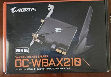 GIGABYTE WiFi 6E GC-WBAX210 (2x2 802.11ax/ Tri-Band WiFi/Bluetooth 5.2/ PCIe Expansion Card$35Edinburg, TX