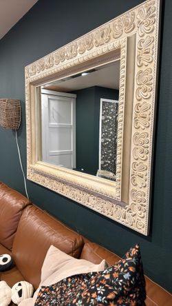 Extra-Large Ornate Farmhouse Wall Mirror (50.5” x 38.5”) – Antique White Carved Frame $100Black Diamond, WA