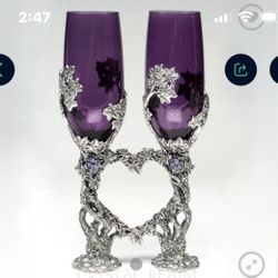 Amethyst Purple Crystal Vine Heart Champagne Flutes !$100Scottsdale, AZ