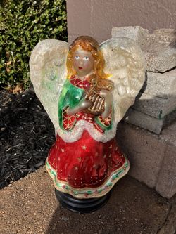 Vintage Blown Glass Christmas Angel Tabletop Decor Red & Green on Stand (Rare)$15Finleyville, PA