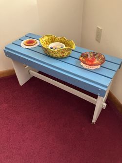 Decorative Painted Wooden Bench - $15.00 (green 2-handled bowl- $5.00)$15Finleyville, PA